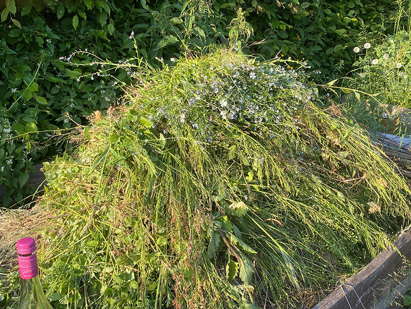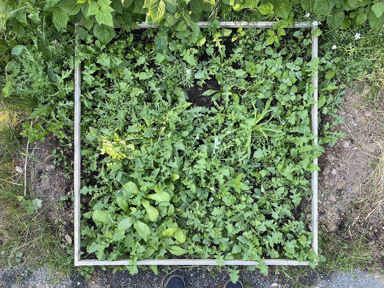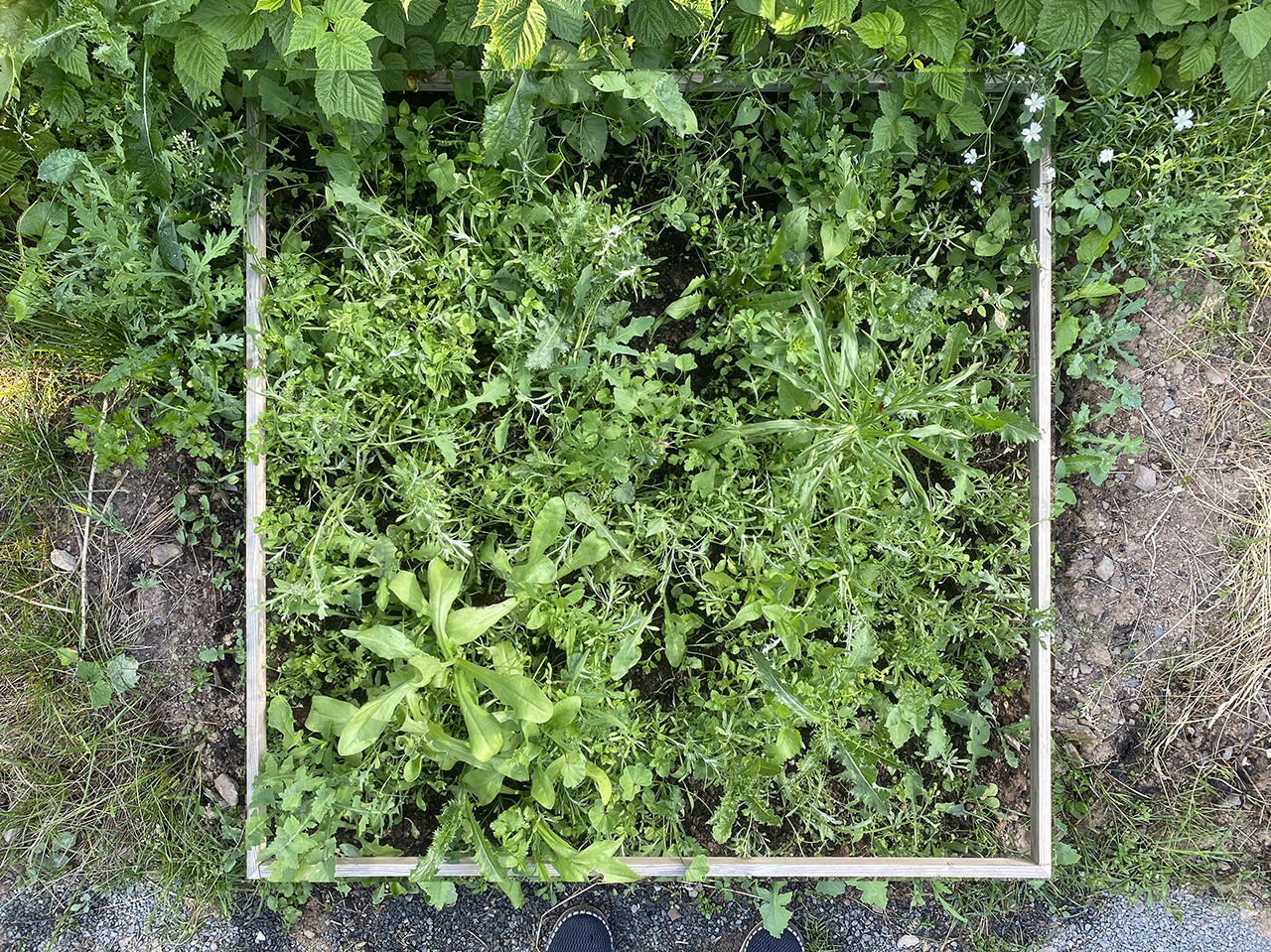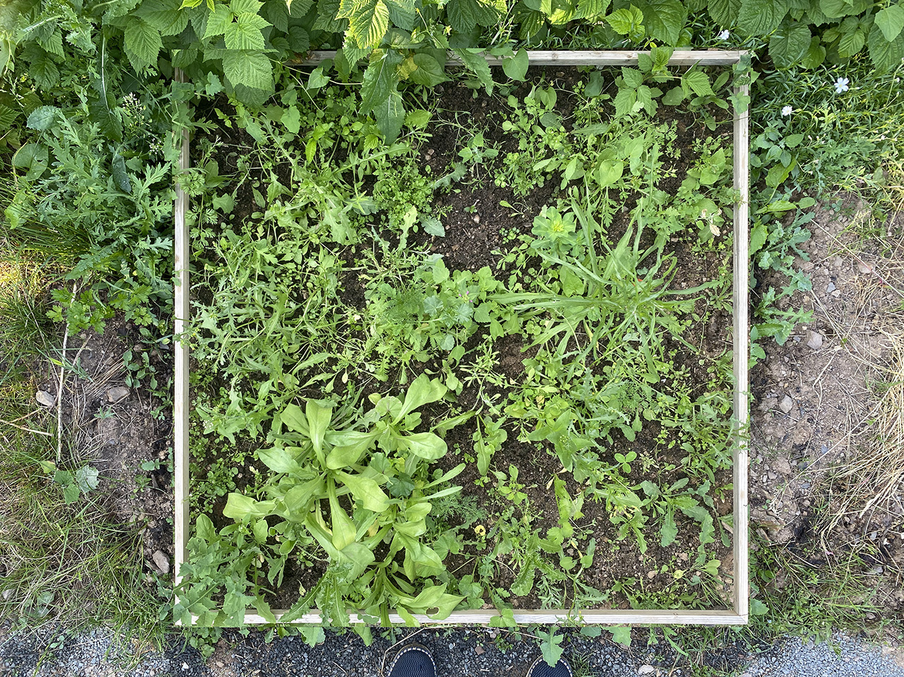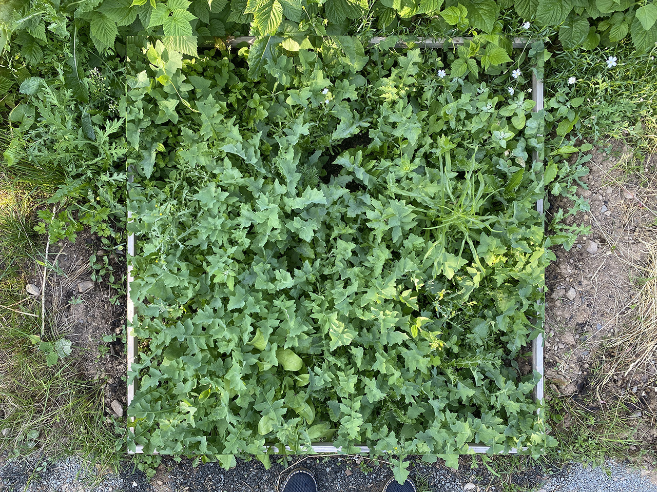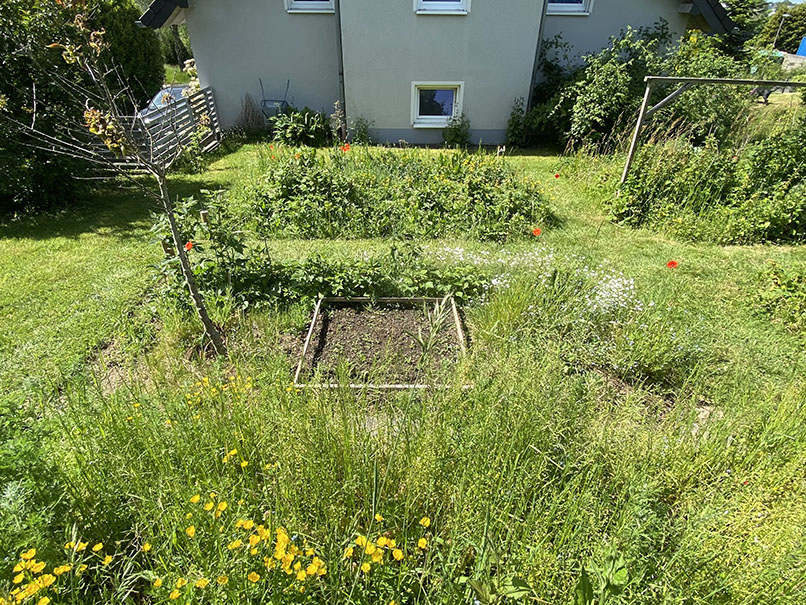 umfeld, nach süd-süd-west. gepflegtes unkraut in beetform |