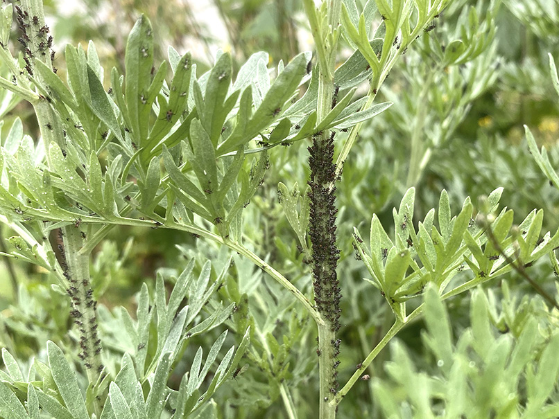 line-up der blattläuse auf dem wermut |